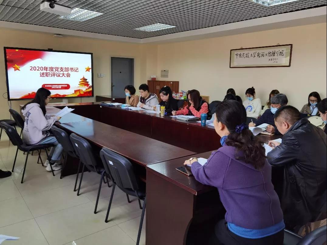 学院8名党支部书记全员进行述职,主要围绕2020年度党支部的组织建设、作用发挥以及在党员发展及教育管理等方面展开。各党支部重点汇报了落实“三会一课”情况,对本支部主题党日、特色活动的亮点进行了分享和展示, 并对当前工作中存在的问题进行了总结。