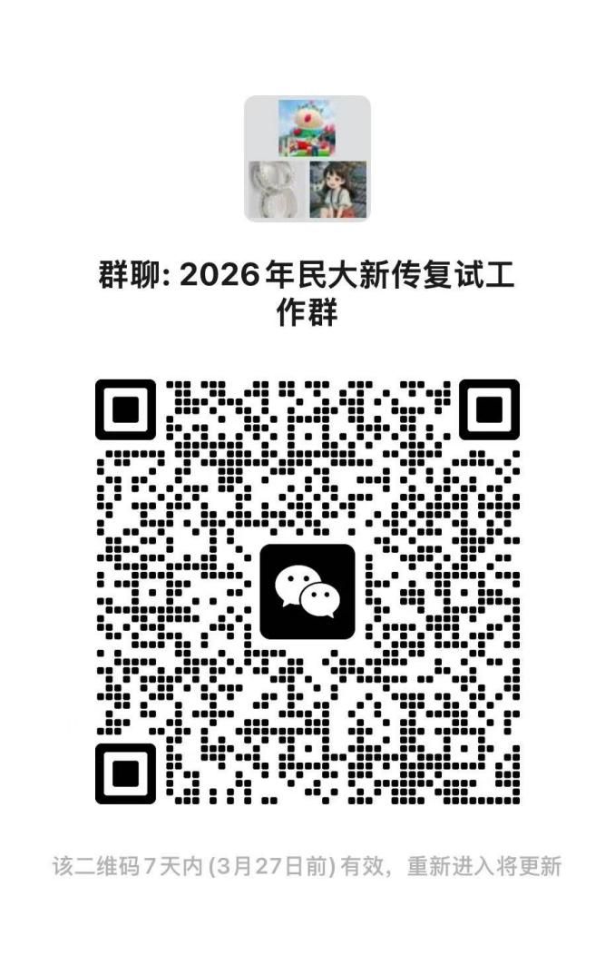 请扫描“2026年民大新传复试工作群”二维码进群。